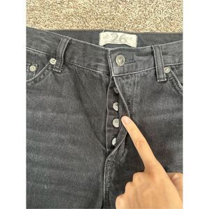 Free People Distressed Maggie Mid Rise Straight Leg Jeans Black Ankle Size 26