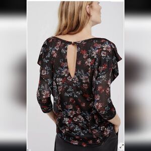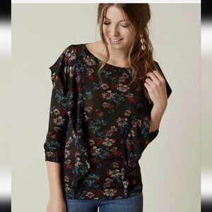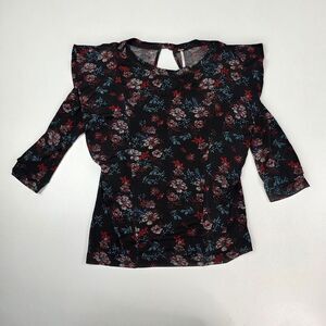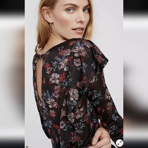 Free People Dock Street Top Blouse Shirt Black Size Floral Size Small 3/4 Sleeve