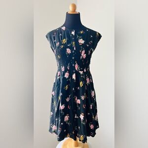 Free People Dress Black Floral Shired Button Front Dress Size XS