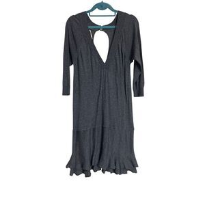Free People Dress Womens Size Large Gray Ruffle Me Up Sweater Knit 3/4 Sleeve