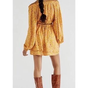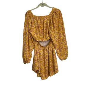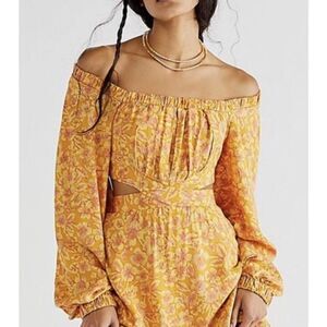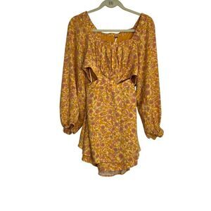 Free People Dress Womens Size Medium Gold Orange Jael Mini Floral Cutout Boho