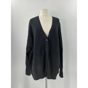 Free People East Sweater Side Oversized Ribbed V-Neck Tortoise Button Cardigan.