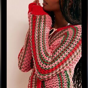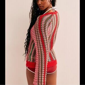 Free People FP Beach Dayton Striped Pullover Sweater Flamingo Combo