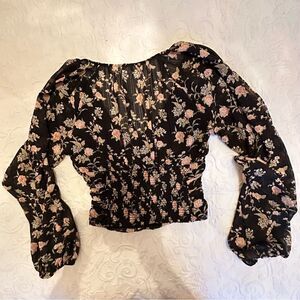 Free People Final Rose Blouse in Black Combo XS