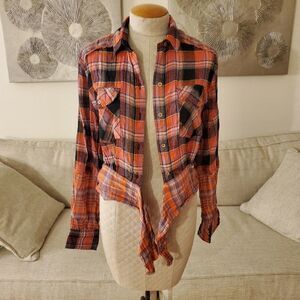 Free People First Bloom Plaid Top size Small in Washed Pop.