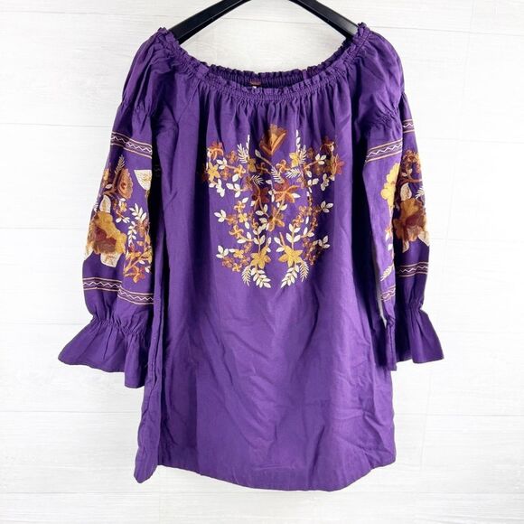 Free People Fleur Du Jours Off Shoulder Embroidered Shift Dress