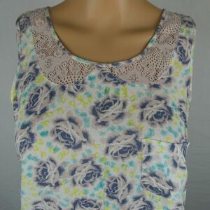 Free People Floral Swing Tunic Tank Top Lace Faux Peter Pan Collar Twee Rose Sm
