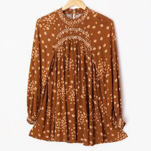 Free People Flowers In Her Hair Brown Boho Tunic Longline S Smocked Ditsy $118
