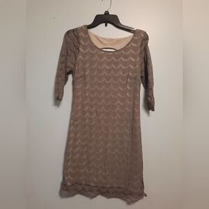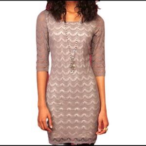 Free People Gray Holly's Stretch 3/4 Sleeve Lace Fitted Mini Dress M