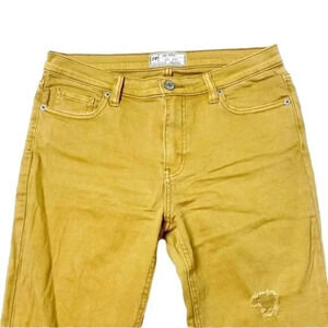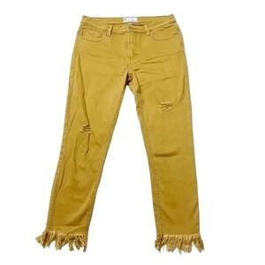 Free People Great Height Frayed Distressed Cropped Skinny Mustard Yellow Jeans