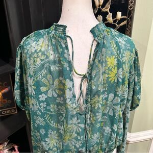 Free People Green Floral Peasant Blouse Balloon Sleeve Boho Top – Size XS