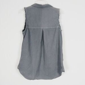 Free People Grey Distressed Linen Button Up Sleeveless Top