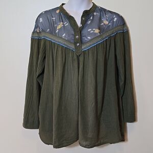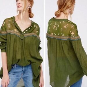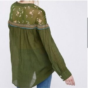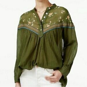 Free People Hearts & Colors Tunic Top Size Large Moss Green Gypsy Bohemian Boho