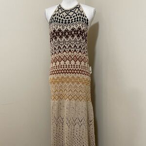 Free People Ikat Oasis Maxi Dress Halter Crochet Knit buckles size M NWT