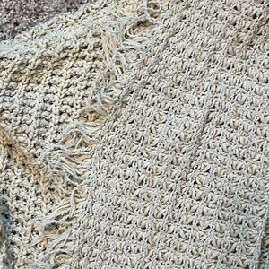 This sweater is made by Free People. It’s a cream open front oversized cardigan with fringe detail and rolled cuffs. Made out of 62% silk, 34% cotton and 4% nylon. Size large and in great pre owned condition. Smoke and pet free home.