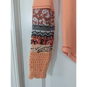 Free People In the Mix Cuff Thermal Tee women's Small coral crochet sleeves