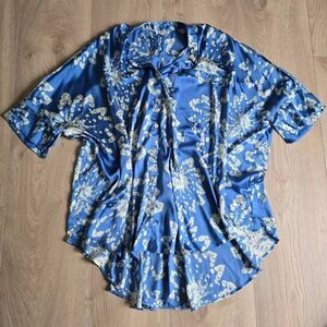 Free People Intimately Crepe Shirt Top Women's Small Blue 100% Polyester Floral