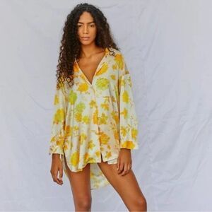 Free People Intimately Silkin' Around Yellow Floral Sleep Shirt, L