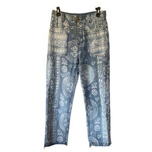 Free People Island Vibes Linen Blend Cropped Pant Blue Size 25
