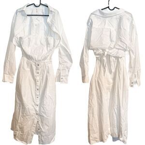 Free People Isley 2 in 1 Cotton Shirt Dress Midi White