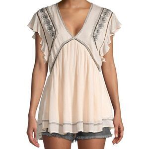 Free People Ivory Embroidered Falling Water Flutter-Sleeve Tunic in Size Small