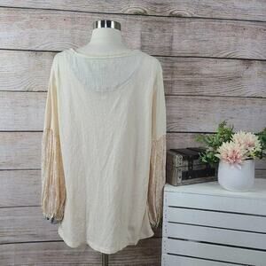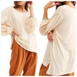 Free People Jade Colorblock Long Sleeve Pocket T-Shirt. Floral patterned sleeves add an extra hint of vintage appeal to this easygoing scoop-neck top. Scoop neck. Long sleeves with button cuffs. Size Extra Small. Excellent Used Condition. Body: 100% Cotton; Sleeve: 100% Viscose; Trime: 100% Polyester.