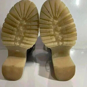 These Free People Heeled Boots are Leather with a back Zipper, there are marks on the rubber. Good condition on the leather. 3.5 inch heel.