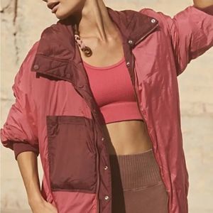 Free People Juno Reversible Puffer Jacket Packable Wine Pink Nylon