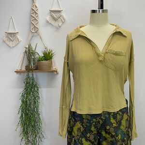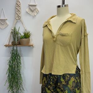 Free People L/S Mustard Top Collared V-Neck Cuffs