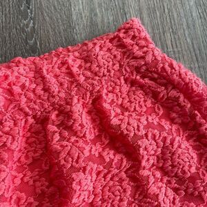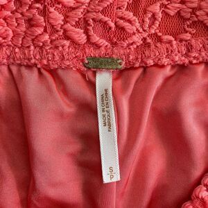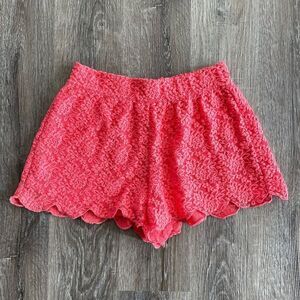 Free People Floral Lace Scalloped Shorts in Coral Pink