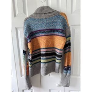 Free People Large This and That Stripe Multicolor Mix Print Knit Turtleneck Swea