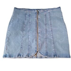 Free People Layla Zip Denim Mini Skirt in Starwash Blue Size 8