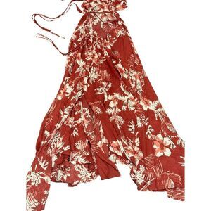 Turn heads and steal scenes in this stunning Free People “Lille” maxi dress in raspberry red. Crafted from lightweight 100% cotton, this halter-neck dream flows effortlessly with every step. Featuring tropical floral prints, sultry side slits, and an open back with double tie closure, it’s made for endless summer days and unforgettable nights.