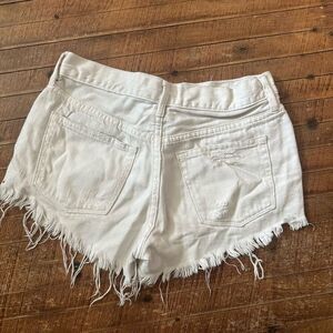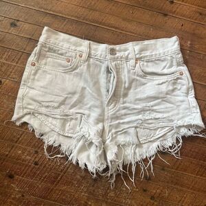 We the Free Living Good Vibrations, white, boho, shortie, Cutoff denim shorts. In good, used condition, minor wash wear. Approximately 14 inches across the waist, 9.5 inch rise, 2 inch inseam. From a pet and smoke free house. Happy to bundle!