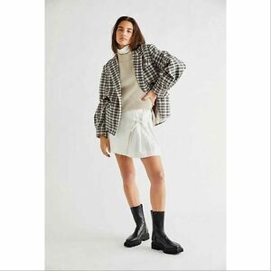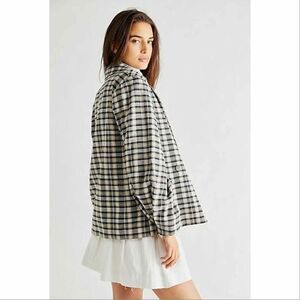 Free People Luminary Plaid Flannel Oversized Blazer Neutral Tan Small