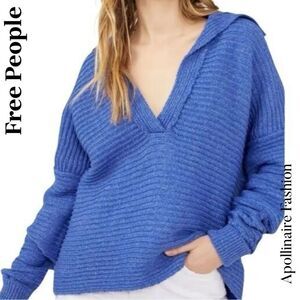 Free People MARLIE PulloverV-Neck Blue Cobalt Sweater Medium NWOT