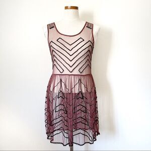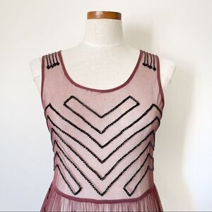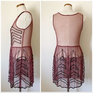 Free People Maroon embellished beaded mini slip dress preowned size Small