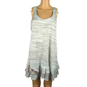 Free People Mixed Fabric Space Dye Silk Contrast Tiered Layered Swing Tunic Top