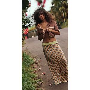 -So fun in a knit fabrication, this set from our free-est collection features a cropped short-sleeve top and matching low-rise skirt.