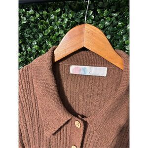 -Features: Soft knit fabrication, short-sleeve button-down top, collared neckline, contrast trim, ribbed elastic waistband, exposed seam detail