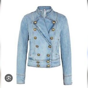Free People Moto Double Breasted Denim Jacket. Country. Military.Coastal Cowgirl