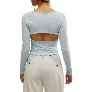 Free People Movement Bail Out Crop Thermal Knit Top Artic Snow Size M/L NWT