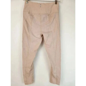 Free People Movement Blush Pink Tight Ribbed Size Medium. Pre owned in good condition. There is one spot on the left band area that has minor staining, it's a very faint blue color. It's not very noticeable. Measurements are in the photos. High rise waist. Pockets.