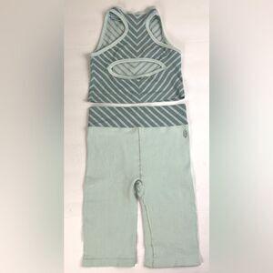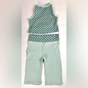 In excellent used condition Free People Biker & Cami Set. Spin, squat and stretch in these high-rise ribbed shorts and cami top. Featuring a diagonally stripes and a body hugging silhouette. Pull-on-Style, stretch fit and lightweight design.
