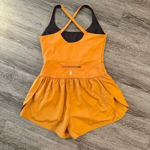The perfect one-and-done running outfit, this easy romper features a slim-fitting top with a cooling cutout at the center paired with airy retro-style shorts.