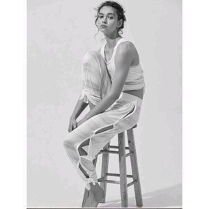 Free People Movement Shasta Linen Wide Leg Sheer Cutout White Beach Pants, Sz S