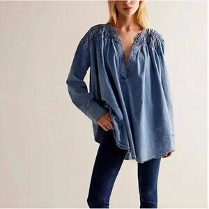 Free People NWOT We the Free Another Love Denim Tunic - xs (oversized)