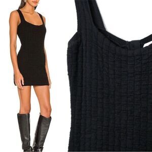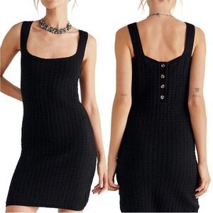 Free People NWT Short And Sweet Knit Mini Dress Button Back Black Small