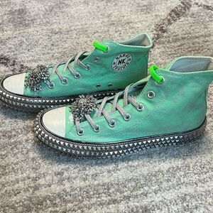 Free People Nan-Ku Couture Cruise Studded Hi Top Sneakers Spring Mint Green US 8