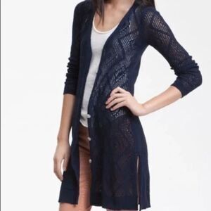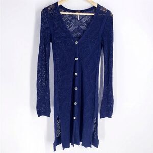 Free People Navy Blue Long Open Knit Cardigan